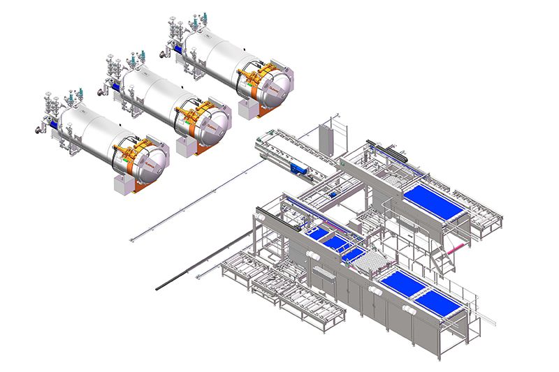 Proceso de carga y descarga de autoclave por lotes para latas y botellas