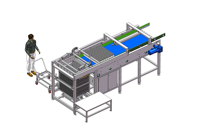 - Alta velocidad de descarga: Nuestros descargadores de bolsas tienen la capacidad de descargar hasta 2-3 bandejas por minuto como máximo, garantizando tiempos de manipulación rápidos.