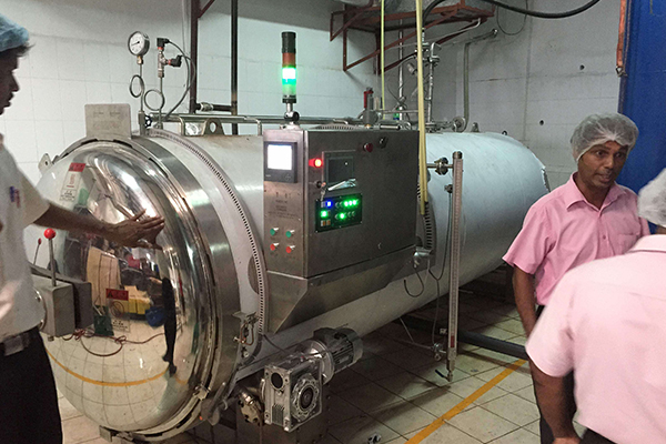 - Requerimientos: El cliente requería una autoclave para esterilizar alimentos para mascotas embolsados, equipado con un sistema de monitoreo remoto y un sistema de registro de datos. Además, el cliente quería que la autoclave se envíe listo para ser utilizado para así eliminar la necesidad de trabajos de instalación posteriores.