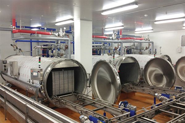 - Requerimientos: El producto se trataba de salsas envasadas en bolsas flexibles, se requería un tanque de precalentamiento para acomodar el proceso de llenado en caliente con un voltaje de 220V/60hz. La retorta para esterilización debía estar equipada con un dispositivo automático de carga y descarga de cestas en cadena que redujera la intensidad de la mano de obra, así como un termómetro digital de marca estadounidense y una HMI con una pantalla de 10".